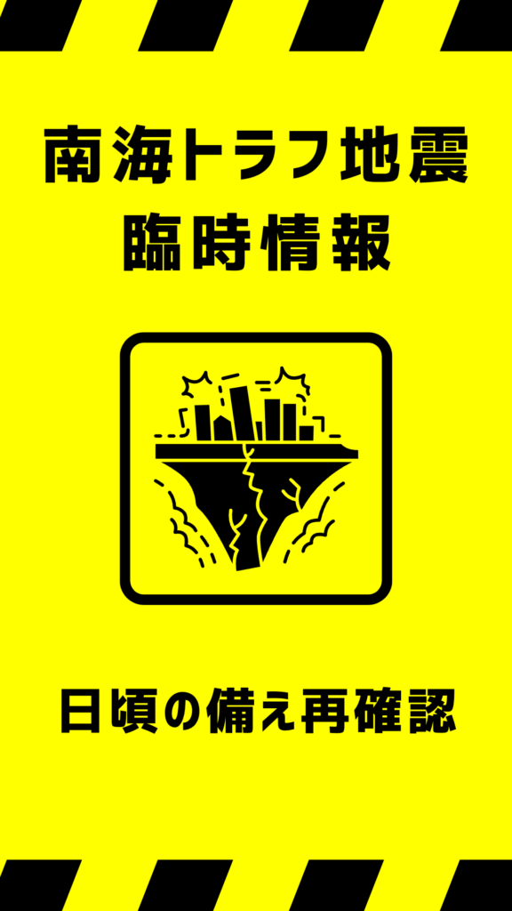 「南海トラフ地震臨時情報」が発表されたことを受けて 2024年8月13日 市民の方々へ 政府は8月8日に発生した宮崎県沖でおきた最大震度6弱の地震をうけて「南海トラフ地震臨時情報」を発表しました。 普段医薬品を使用している市民の方々は、救急医療情報キットの確認、お手元にお薬手帳を携帯してください。 また、医薬品を必要以上に確保しようとすることは、むしろ医薬品の供給負荷をきたす可能性があるためお控えください。 大和市「救急医療情報キット」に関して 詳細はこちらをクリックしてください。