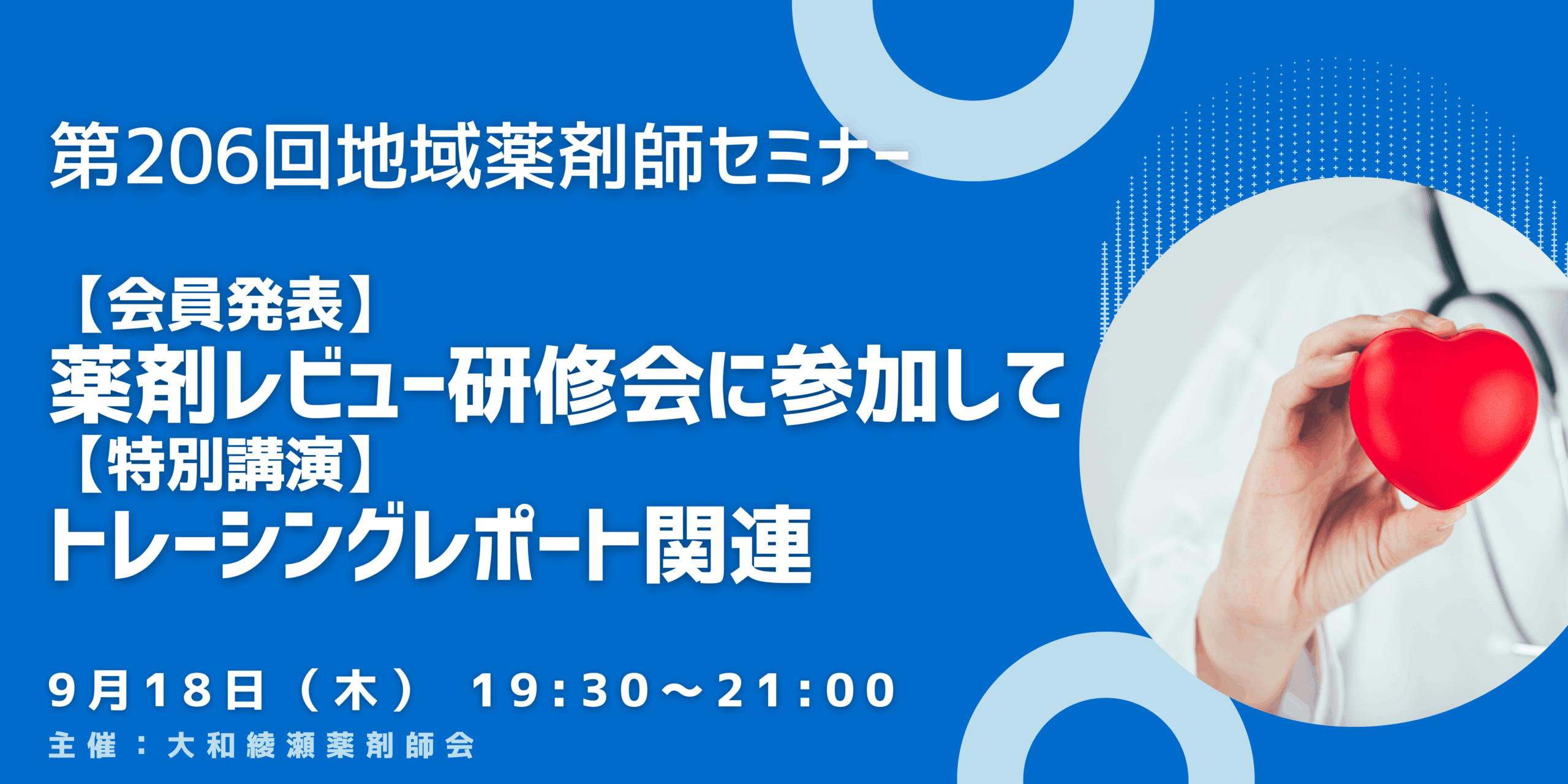 9月18日(木)19時30分よりzoomウェビナーにて第206回地域薬剤師セミナーを開催いたします。