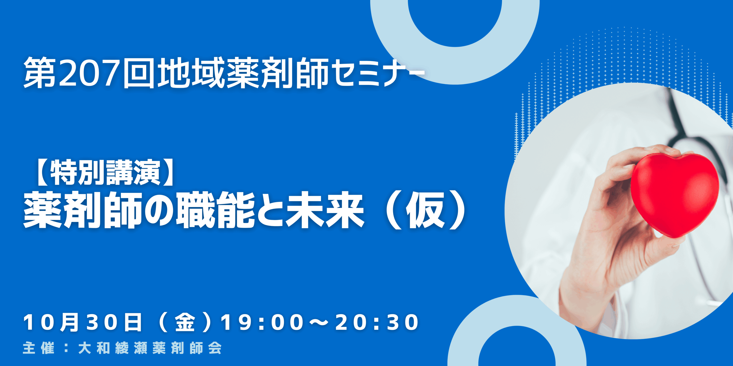10月30日(木)19時00分より大和市文化創造拠点シリウスにて第207回地域薬剤師セミナーを開催いたします。